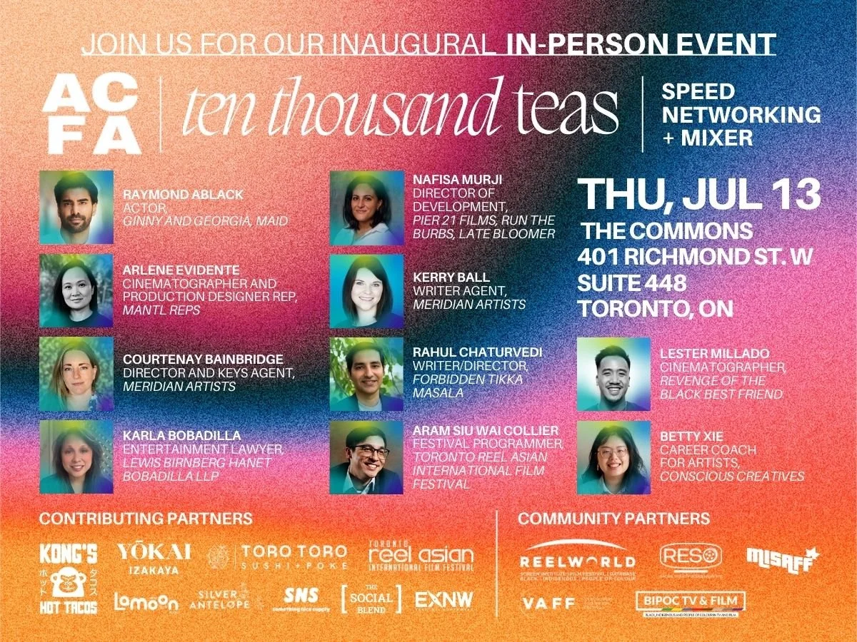 Ten Thousand Teas is our inaugural speed networking event for Asian Canadian filmmakers. It’s a safe space to sit down with industry mentors who can offer project specific advice, help navigate the next step in your career, or provide tools to manage your creative wellness.